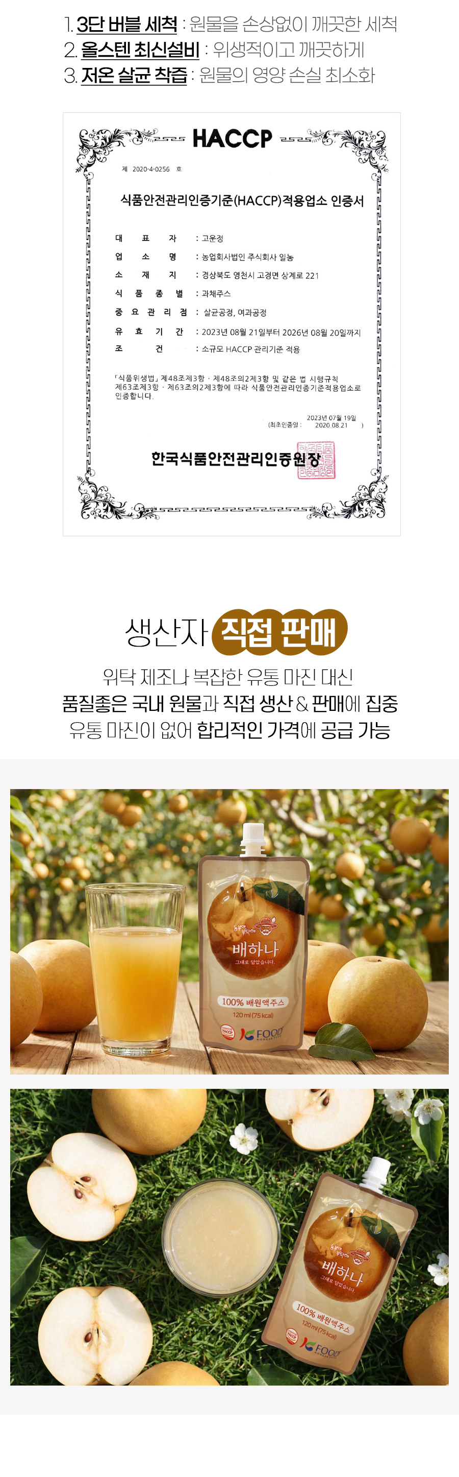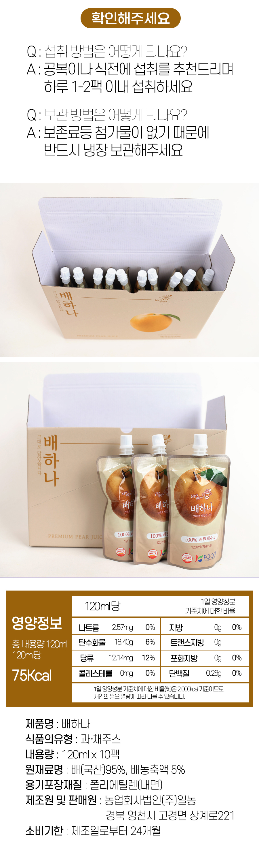 | 1-1. 제품명 | 배하나 |