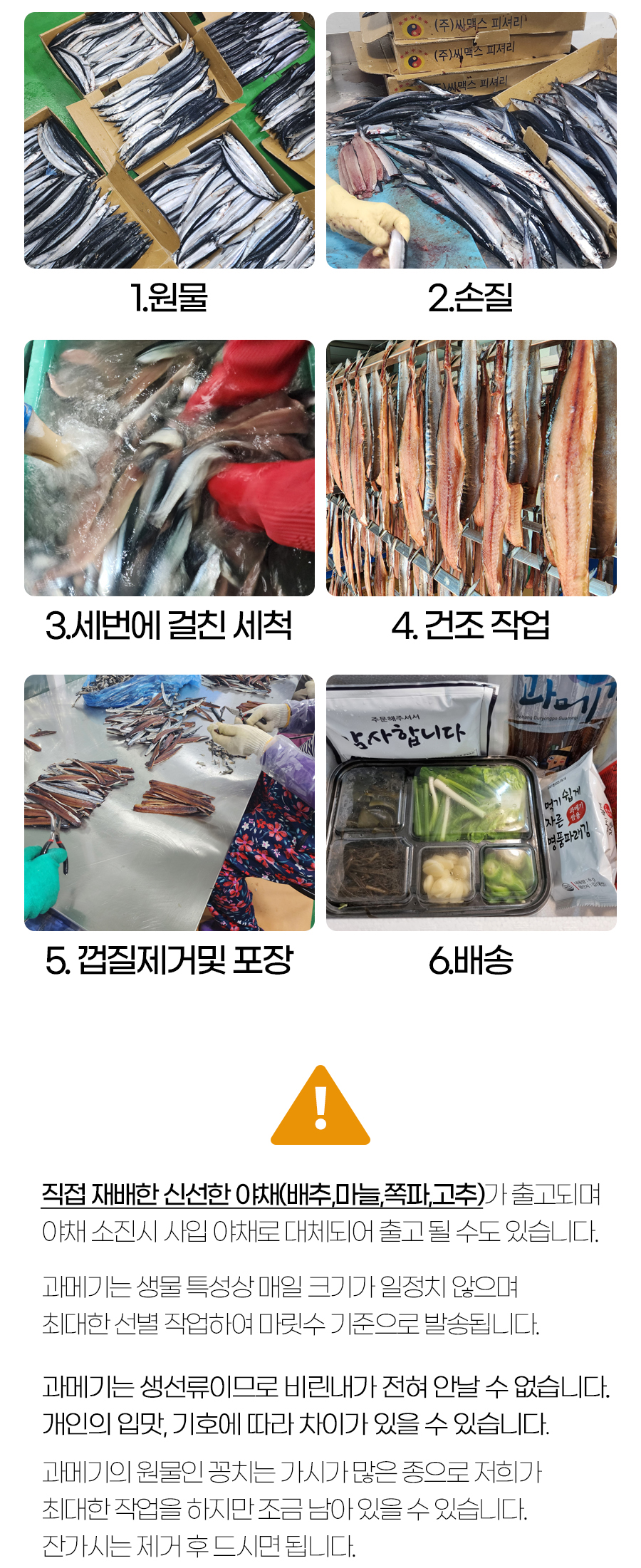 | 4. 「농수산물의 원산지 표시 등에 관한 법률」에 따른 원산지 | 과메기(원양산)/야채(국내산) |