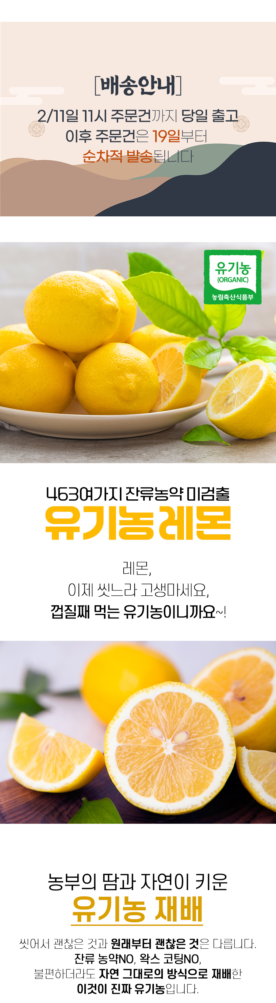 | 7. 상품구성 | 유기농 레몬 3kg / 5kg |