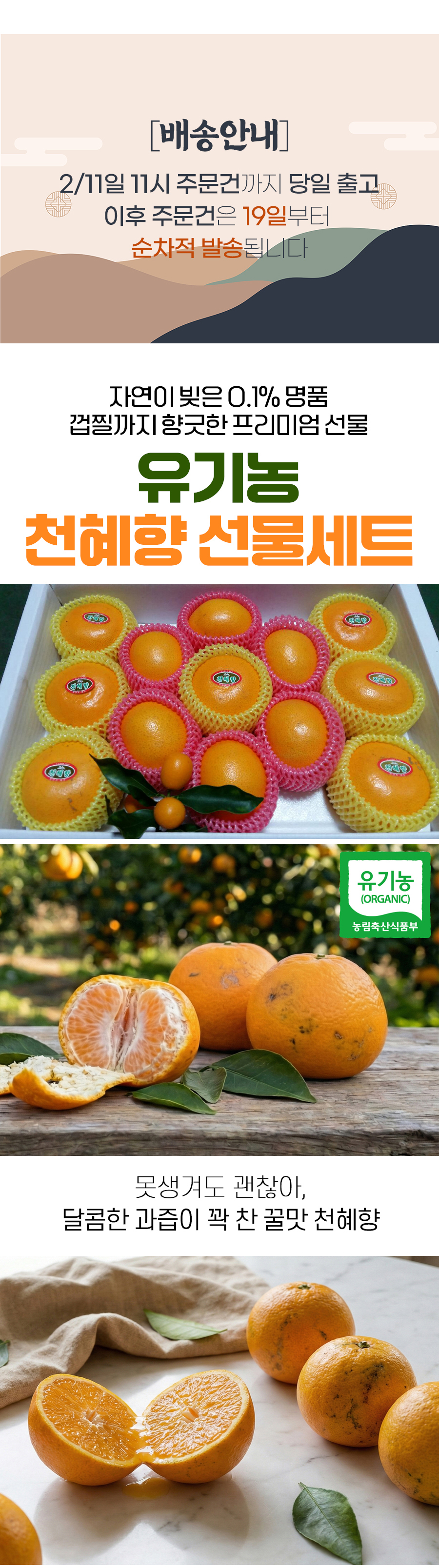 | 7. 상품구성 | 유기농 천혜향 3kg / 5kg |